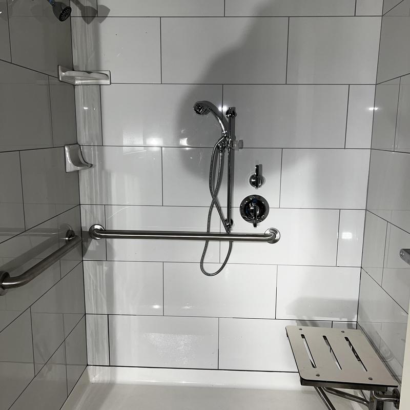 Valice Plumbing installed a new handicap-accessible shower in Stockton, California. The project included plumbing a Chicago valve with diverters, setting a 60x36 Florestone shower pan, passing city inspection, and completing finish plumbing with grab bars and a seat. This installation improved accessibility and met safety standards for the customer.