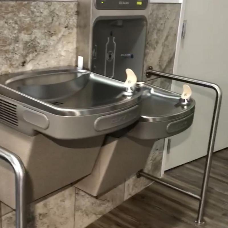 Valice Plumbing installed a new hi-lo drinking fountain in Stockton, California. The team connected a new water supply and drain, then returned after drywall and tile work to complete the fountain installation with a new water filler.
