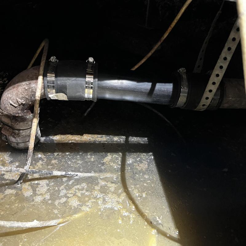 Valice Plumbing replaced ten leaking galvanized pipes beneath a home in Stockton, California. Technicians removed corroded pipe under the kitchen, which caused a persistent odor. They installed new 2-inch ABS pipe with two band fittings and completed a full drain line repair.