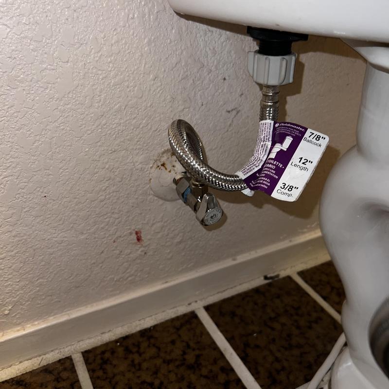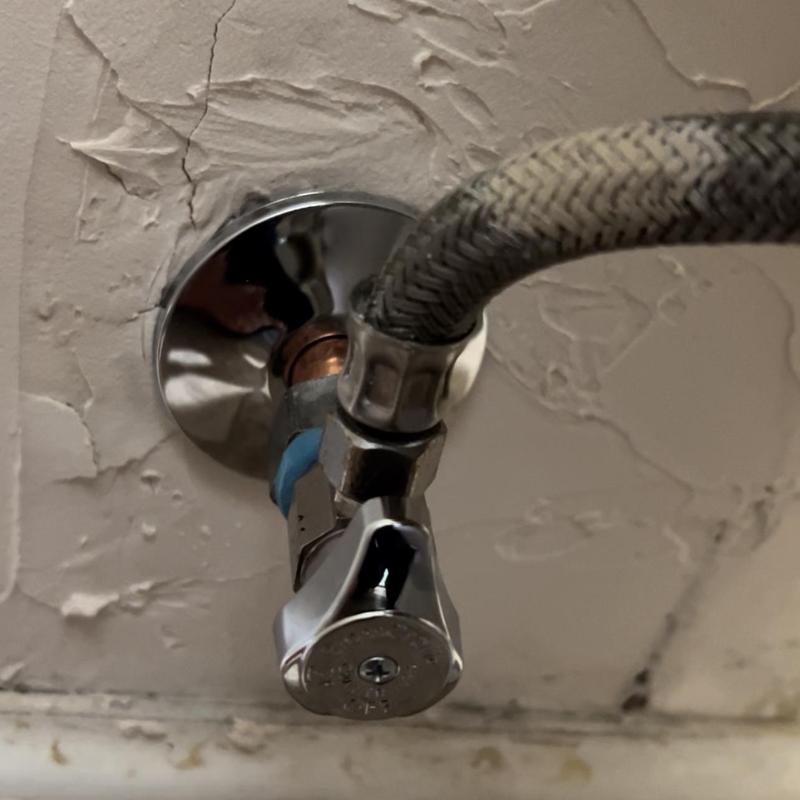 A plumber in Stockton, California replaced a leaking toilet shut-off valve. The service included turning off the water, draining the lines, removing the old valve, and installing a new angle stop, escutcheon, and supply line. The plumber then restored the water supply to ensure proper function.