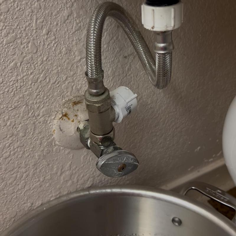 A plumber replaced a faulty angle stop in Stockton, California. The old angle stop did not shut off fully, so the technician removed it and installed a new one to restore proper valve function.