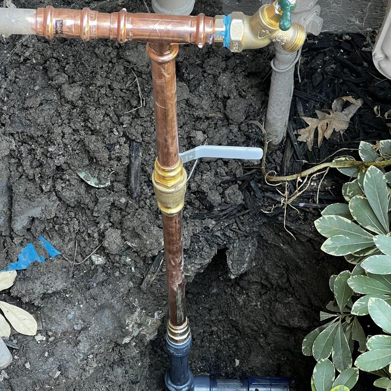 Valice Plumbing repaired a leaking main water service in Stockton, California. Technicians removed damaged galvanized and PVC piping, then installed new ¾-inch Schedule 80 pipe and copper with ProPress fittings. After completing the installation, they restored the water service with no leaks.