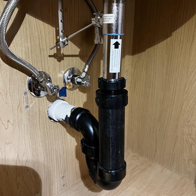 A plumber in Stockton, California installed a new 8-inch spread Price Pfister faucet and pop-up drain. The plumber removed a leaking faucet and faulty parts, replaced two angle stops, and installed a new chrome P-trap. The system was tested after installation to ensure there were no leaks.