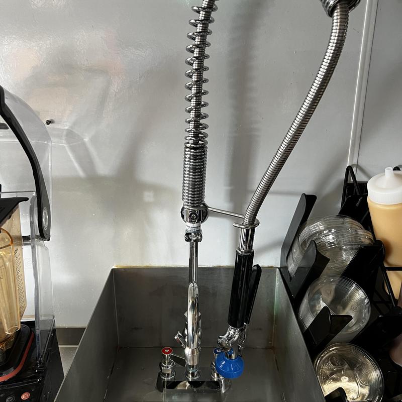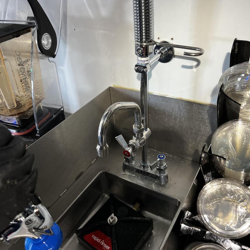 Valice Plumbing installed a new Fisher faucet and an additional faucet with a 6-inch spout at Dutch Bros in Manteca, California. The team replaced a leaking, non-functional unit and restored water service after completing the installation.