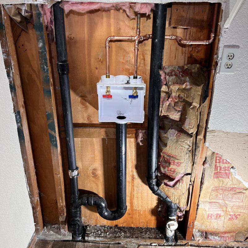 Valice Plumbing installed a new washer box in Stockton, California. Technicians removed damaged sheetrock, replaced punctured drain pipes, upgraded to new ABS piping, soldered fresh water lines, and added two cleanouts to improve access. The project addressed a leak and updated outdated plumbing during the wall opening.