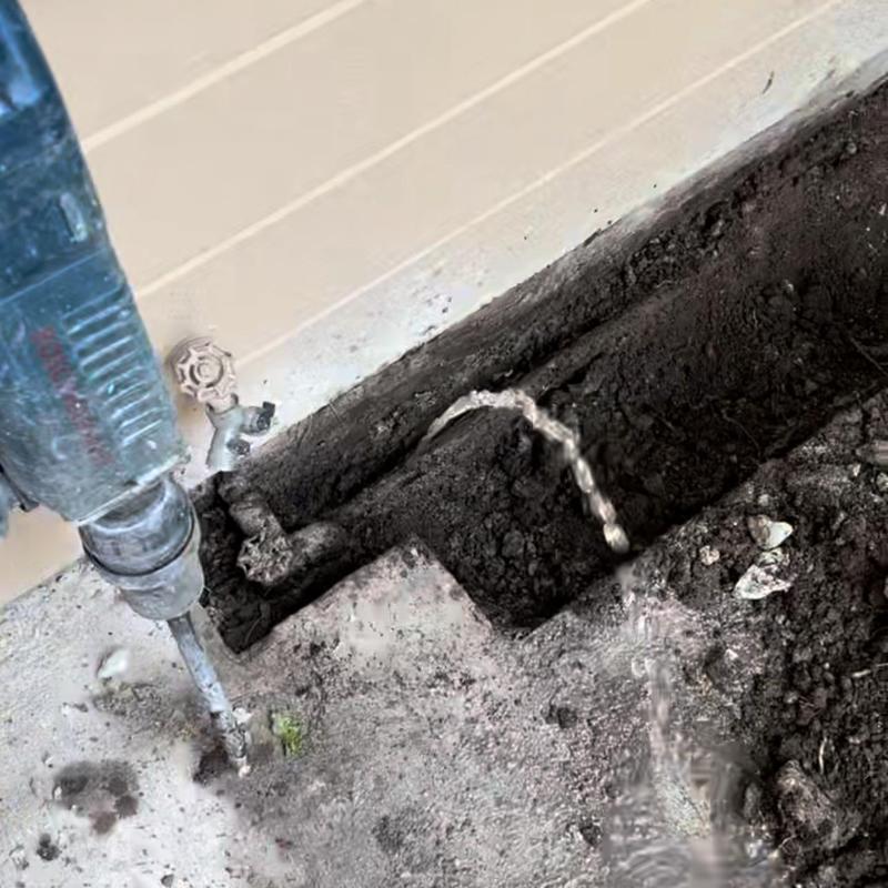 Valice Plumbing replaced a leaking ¾-inch copper water line in Stockton, California. Technicians located the source under a backyard concrete slab, removed the damaged pipe using a jackhammer, installed new piping with a protective sleeve, and restored the concrete after verifying no further leaks.