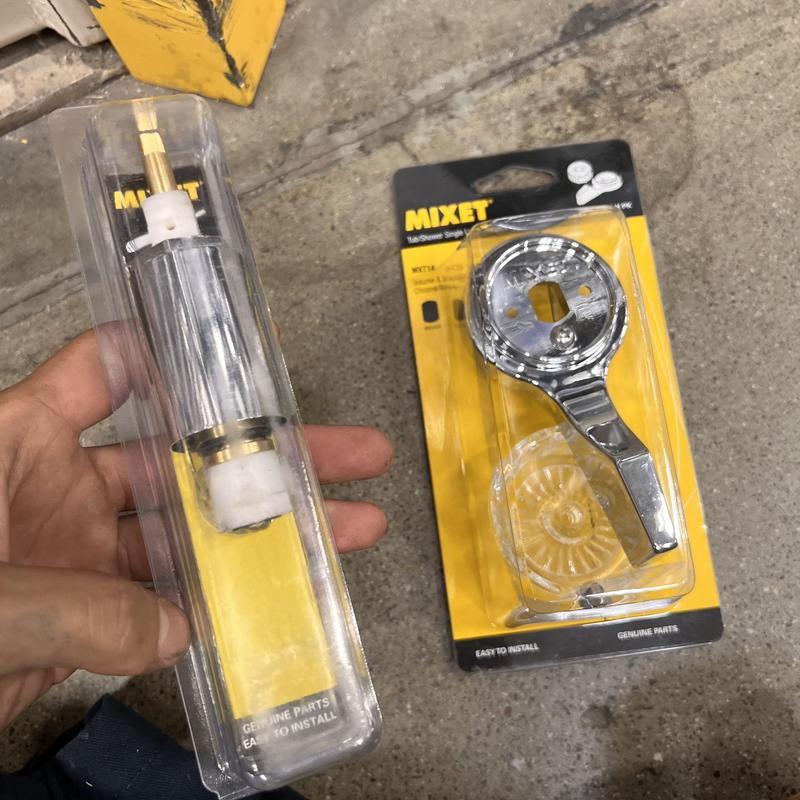 A plumber in Stockton, California repaired a malfunctioning Mixet tub and shower valve. The service included removing the valve trim, shutting off the water, replacing the Mixet cartridge, and installing a new handle. This resolved the issue of inconsistent water temperature during use.