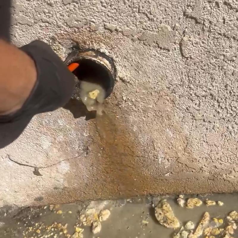 Valice Plumbing repaired a damaged 2-inch kitchen drain line in Stockton, California. Technicians cleared a blockage using a drain snake, located root intrusion with a camera, removed the affected pipe section, completed a pipe replacement, and restored the area with fresh concrete. This service addressed a backed-up kitchen and washer drain system.