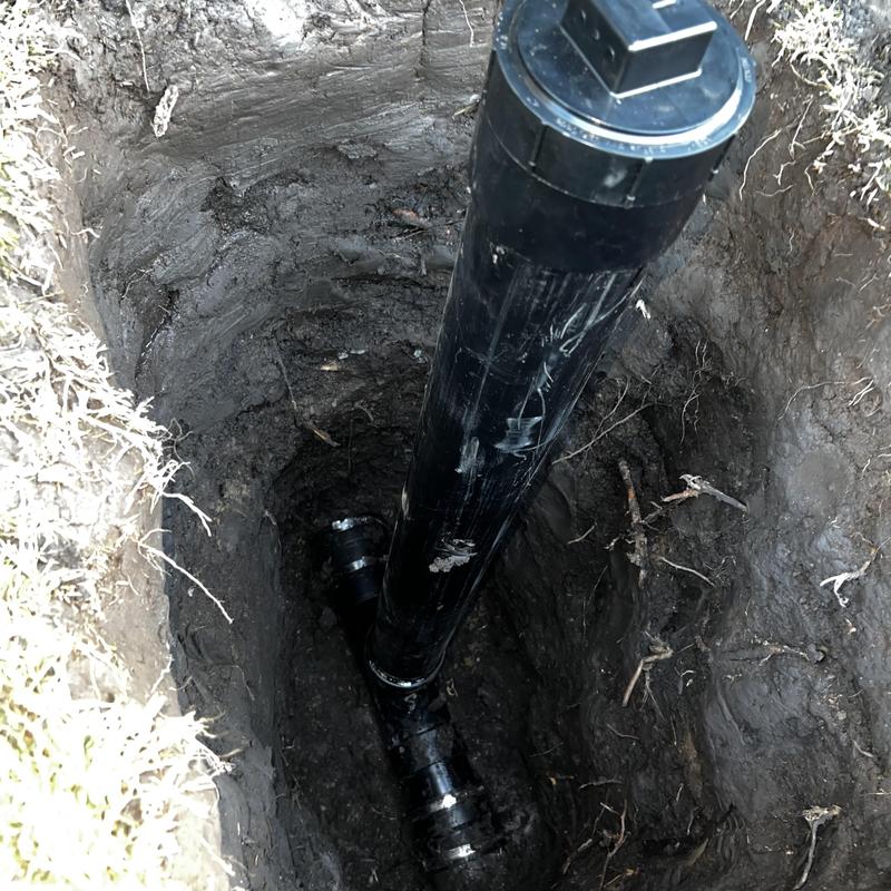 Valice Plumbing installed a new 3-inch two-way sewer cleanout in Stockton, California. The team dug three feet to access the existing ABS pipe, completed the installation, tested system flow by running all fixtures, and backfilled the area with soil. This service helps provide direct sewer access for future maintenance.
