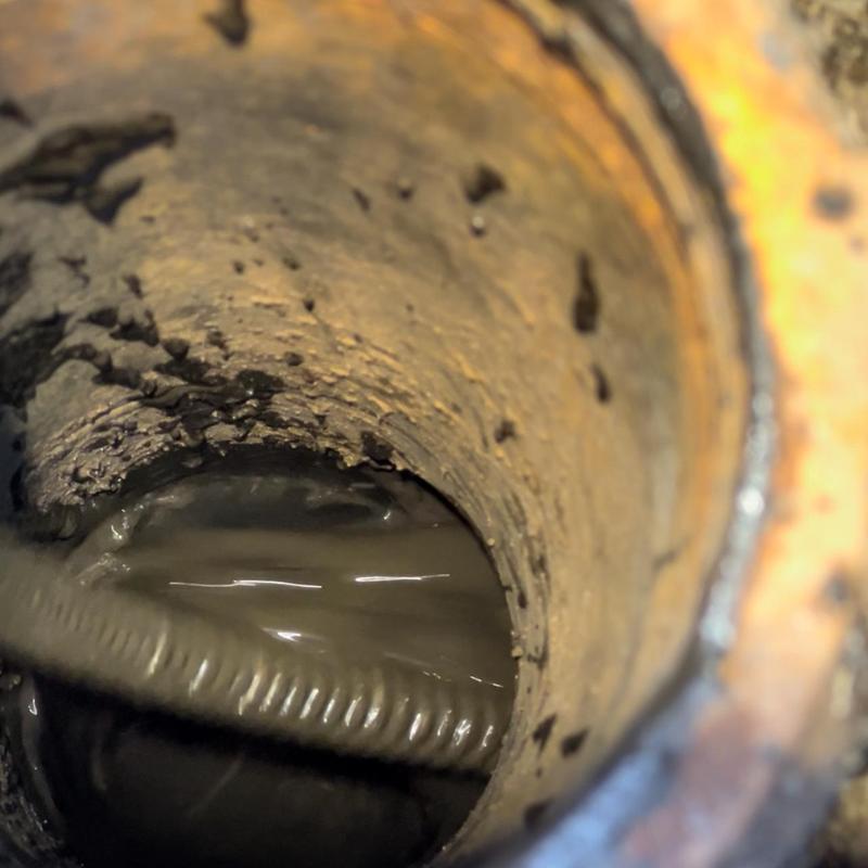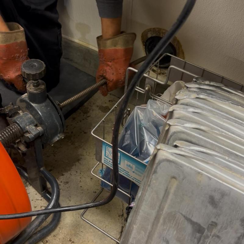 Valice Plumbing cleared a clogged grease main drain at a commercial site in Stockton, California. After a recent grease trap pump-out failed, the team used a drain snake extending 70 feet to fully remove the blockage, restoring efficient drainage to prevent future backups.