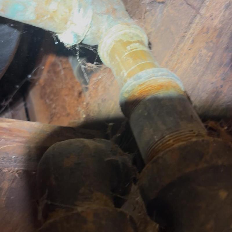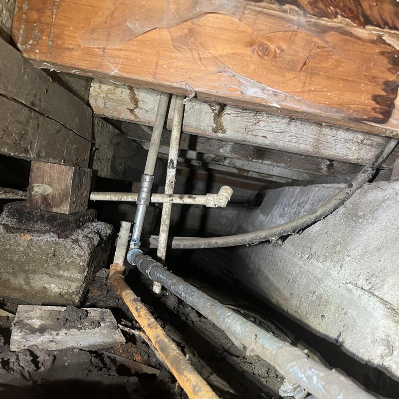 A plumber in Stockton, California repaired a major water leak beneath a home. The team located the damaged galvanized pipe, removed a section, and replaced it with new PEX piping. They restored the water supply after completing the emergency repair.