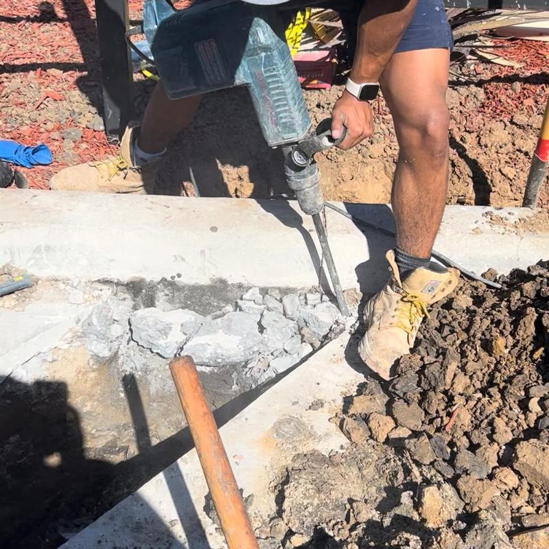 Valice Plumbing replaced a leaking ¾-inch copper water line in Stockton, California. Technicians located the source under a backyard concrete slab, removed the damaged pipe using a jackhammer, installed new piping with a protective sleeve, and restored the concrete after verifying no further leaks.