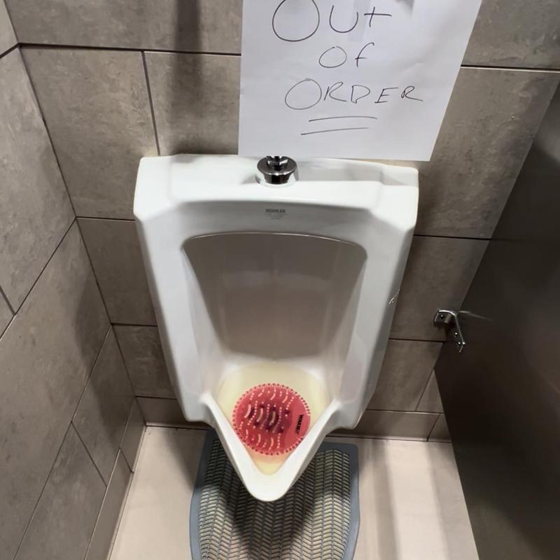 Valice Plumbing cleared a clogged urinal at Mercedes-Benz of Stockton, California, using a drain snake four times to fully remove the blockage. Following the service, proper drainage was confirmed and the out-of-order sign was removed, restoring restroom usability.