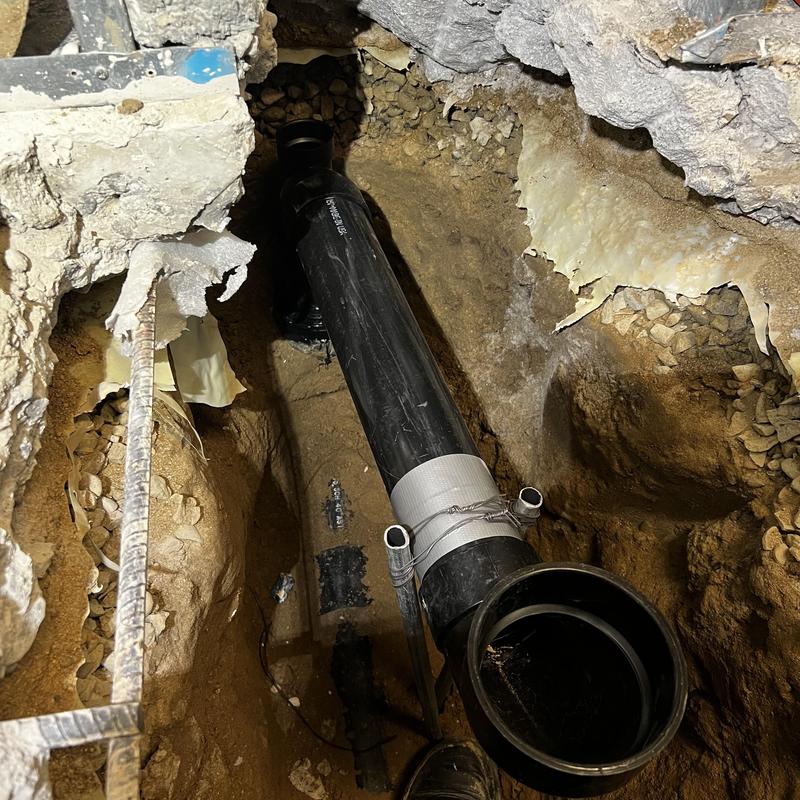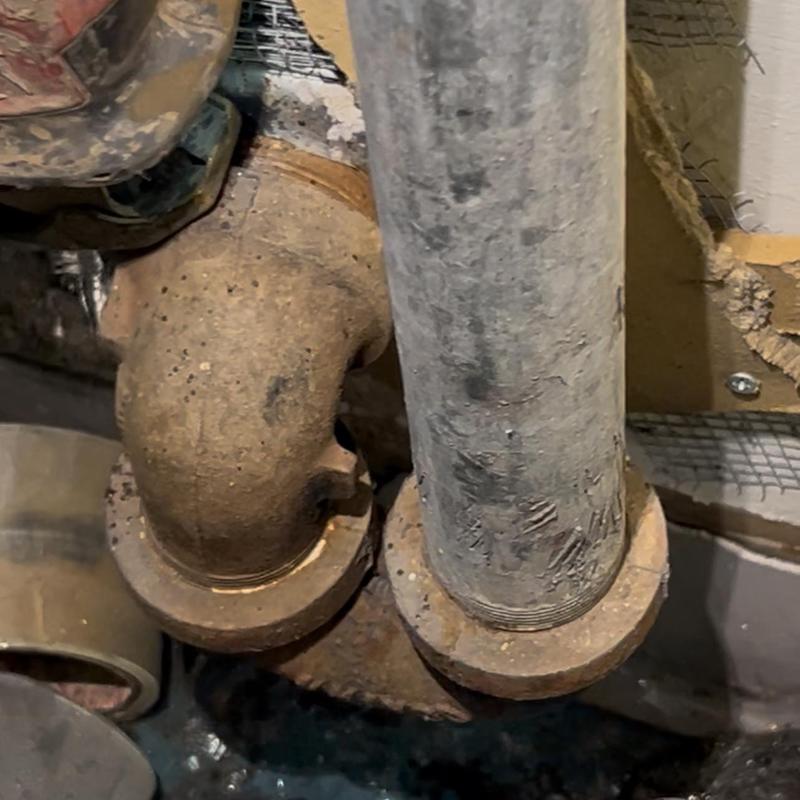 Valice Plumbing completed an emergency basement plumbing repair in Stockton, California. Technicians removed a broken cast iron fitting that caused flooding and installed two new four-inch couplings and pipe to restore proper drainage and stop the leak.