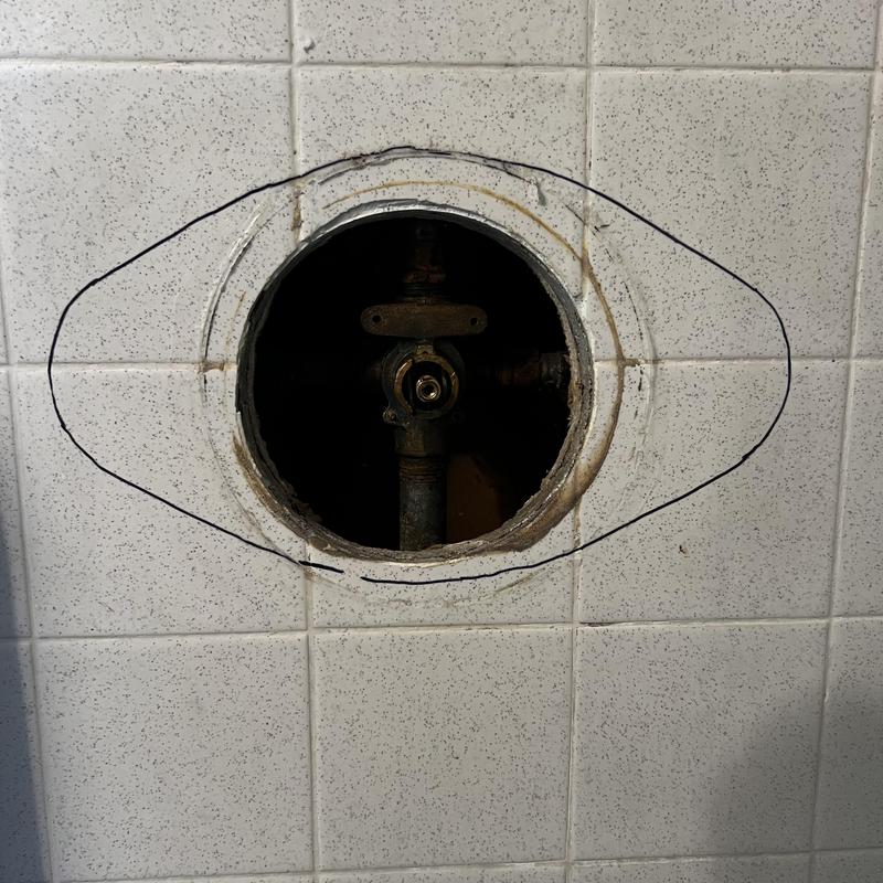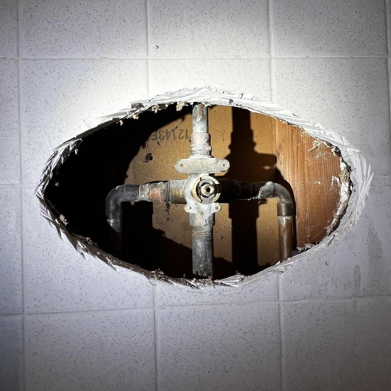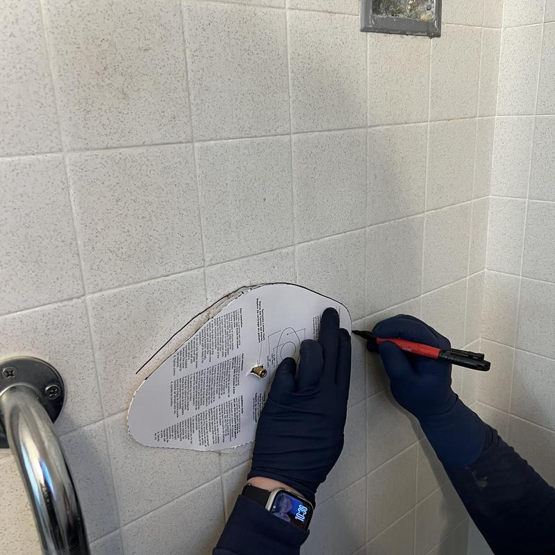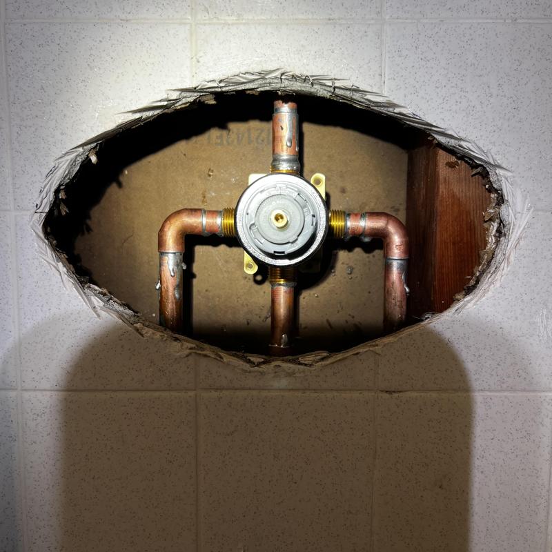 A plumber in Stockton, California installed a new Delta valve and repair plate. The job involved removing damaged tile, taking out the leaking valve, soldering the new valve, attaching the repair plate, and installing the Delta finish trim for improved function and control.