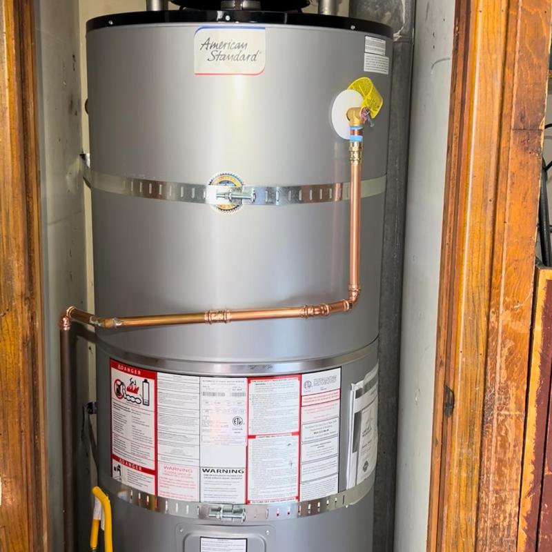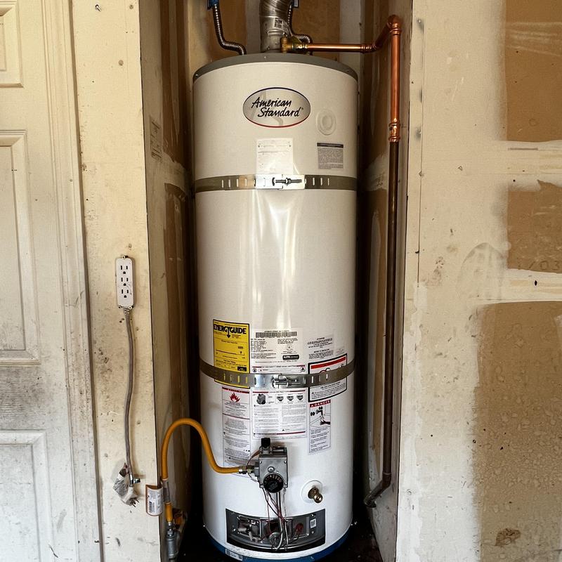 A technician in Stockton, California installed a new 40-gallon American Standard water heater. The previous unit failed to produce hot water and made a loud noise when restarted. Inspection revealed a damaged burner. The team removed the faulty unit and completed the full installation with all necessary parts.