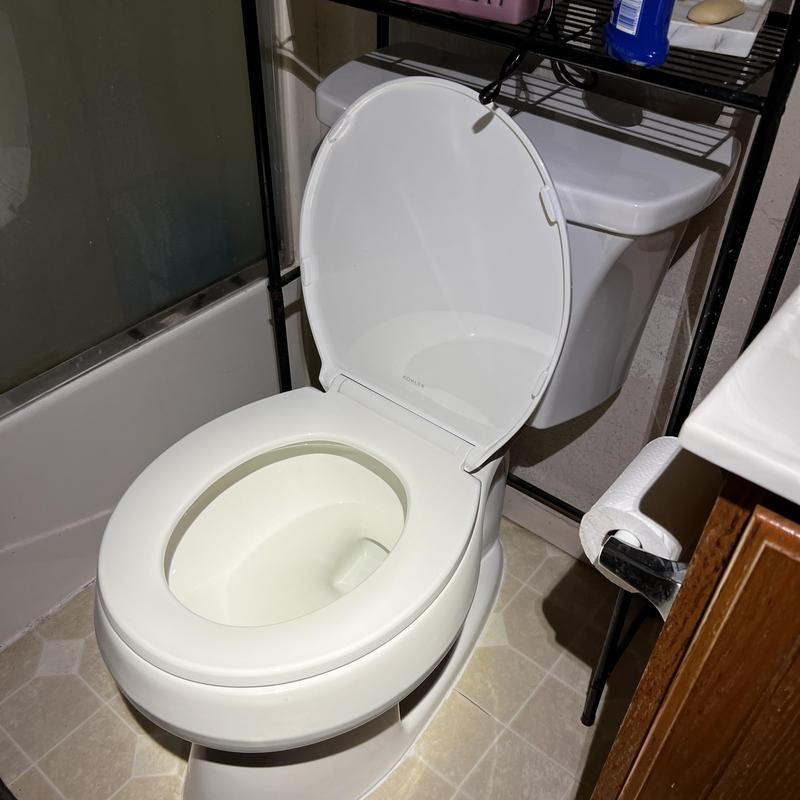 A plumber in Stockton, California removed an old toilet with a weak flush and installed a new Kohler round toilet. The work also included replacing the toilet’s water supply line to ensure proper function and flow.