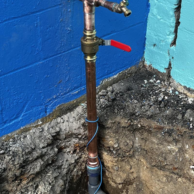 Valice Plumbing repaired a main water service in Stockton, California. Technicians removed the damaged line, excavated to expose the existing PVC, and installed a new 1-inch Schedule 80 PVC pipe. They added a new ball valve shut-off and restored water flow safely to the property.