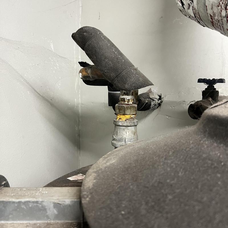 Valice Plumbing installed a new gas line on the roof of a two-story building in Stockton, California. The crew relocated the existing line to accommodate HVAC access, cut the pipe, added a MegaPress 90 and reducer, then tested and restored gas flow to the water heater without any leaks.