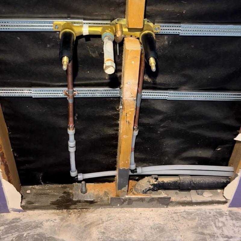 Valice Plumbing installed a new handicap-accessible shower in Stockton, California. The project included plumbing a Chicago valve with diverters, setting a 60x36 Florestone shower pan, passing city inspection, and completing finish plumbing with grab bars and a seat. This installation improved accessibility and met safety standards for the customer.